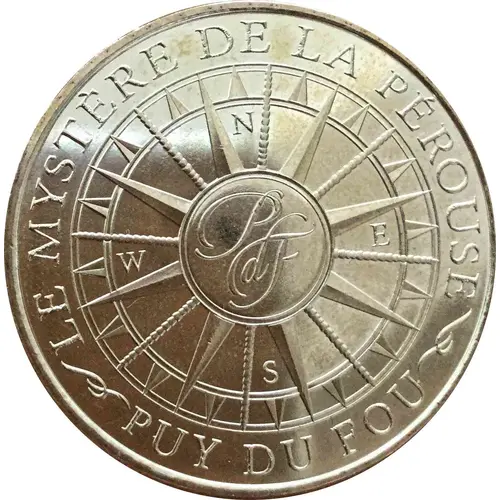 On the periphery the word France written in eight languages. France at 12 o`clock, 2017 at 6 o`clock, the whole linked by 14 stars on the right and on the left. In the center, the building of the currency of Paris. |
