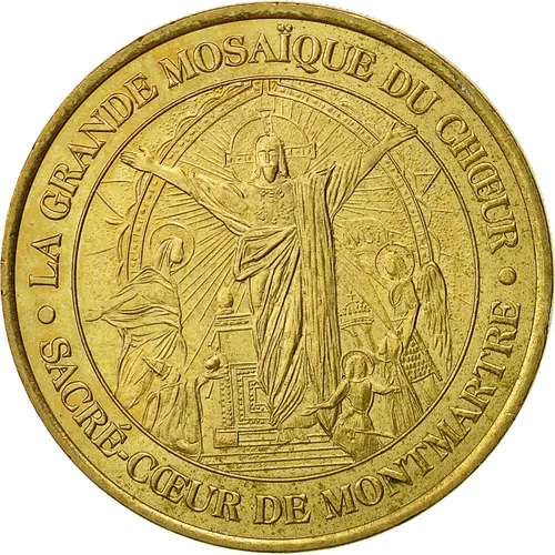 On the periphery the word France written in eight languages. France on the upper and lower sides of the hexagon with the year on the right and left. In the center, the building of the Monnaie de Paris with 6 stars above and below. |