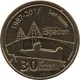 On the periphery the word France written in eight languages. France at 12 o`clock, 2017 at 6 o`clock, the whole linked by 14 stars on the right and on the left. In the center, the building of the currency of Paris. |