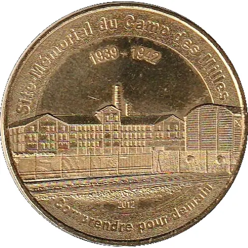 On the periphery, the word France written in eight languages. France at 12 o`clock, 2012 at 6 o`clock, all linked by 14 stars to right and left. In the center, the Paris mint building. |