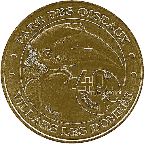 On the periphery the word France written in eight languages. France at 12 o`clock, 2017 at 6 o`clock, the whole linked by 14 stars on the right and on the left. In the center, the building of the currency of Paris. |