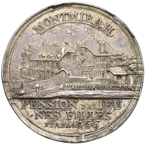 | Obverse lettering | MONTMIRAIL PENSION DE IEU =NES FILLES ETABL · 1766 |