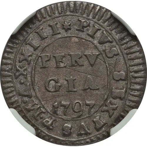 Artistry: The engraver for this specific provincial billon issue is typically anonymous, reflecting the practical nature of such coinage. Stylistically, the Muraiola adheres to the late Baroque aesthetic prevalent in Papal States mints, albeit simplified for a lower denomination. The obverse typically features the Papal arms, displaying the tiara and crossed keys, often surrounded by the pontiff's name and title. The reverse design would commonly present the denomination, "4 BAIOCCHI," and the mint city, "PERUGIA," often within a wreath or cartouche. The overall design prioritizes clear legibility and the assertion of authority, rather than intricate artistic flourishes, consistent with its utilitarian function.