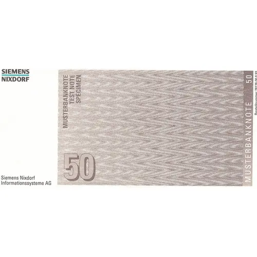 | Obverse lettering | MUSTERBANKNOTE TEST NOTE SPECIMEN Siemens Nixdorf Informationssysteme AG |