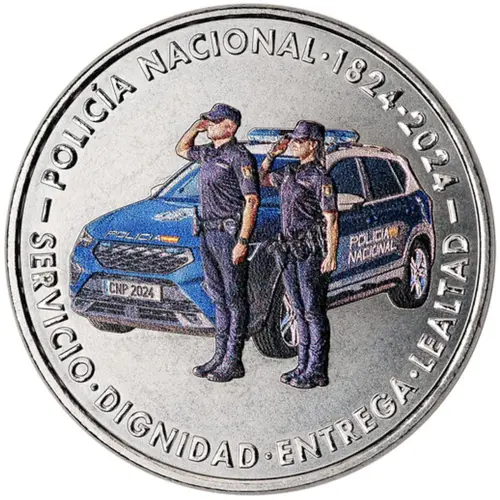 | Opis líce | — POLICÍA NACIONAL · 1824-2024 — SERVICIO · DIGNIDAD · ENTREGA · LEALTAD (Translation: National Police. Service, dignity, dedication, loyalty.) |
