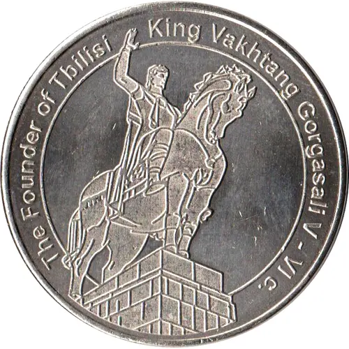| Obverse description | Statue of the king Vakhtang Gorgasali by sculptor E.Amashukeli, surrounding by English legend. |