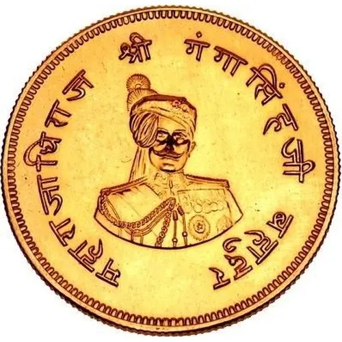 | Obverse description | Portrait of Ganga Singh, legend in Nagari, `Maharajadhiraj Shree Ganga Singhji Bahadur` surrounds |