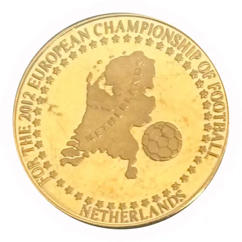 FOR THE 2012 EUROPEAN CHAMPIONSHIP OF FOOTBALL Shows a map silhouette labeled “NETHERLANDS” Also shows a football (soccer ball) Surrounded by a ring of stars |