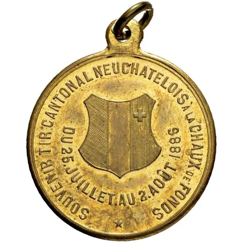 | Obverse lettering | SOUVENIR TIR CANTONAL NEUCHATELOIS À LA CHAUX DE FOND DU 25. JUILLET AU 2. AOÛT 1886 |