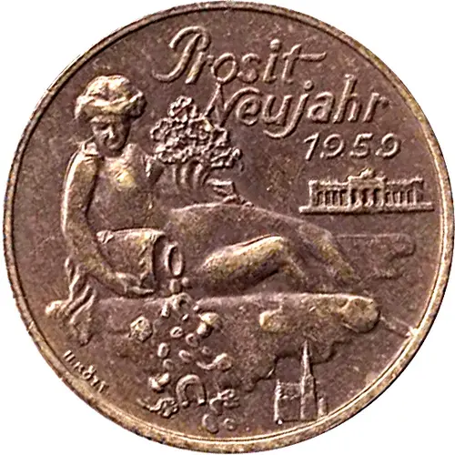 | Obverse lettering | Prosit Neujahr 1959 K.Rott (Translation: Happy New Year 1959) |