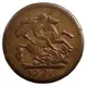 توضیحات پشت توکن Saint George riding horse, facing right, wearing helmet and cape, holding sword in right hand, slaying dragon below.