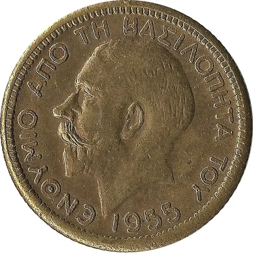 | Legenda del dritto | ΕΝΘΥΜΙΟ ΑΠΟ ΤΗ ΒΑΣΙΛΟΠΗΤΑ ΤΟΥ 1955 (Translation: SOUVENIR FROM NEW YEAR CAKE OF 1955) |