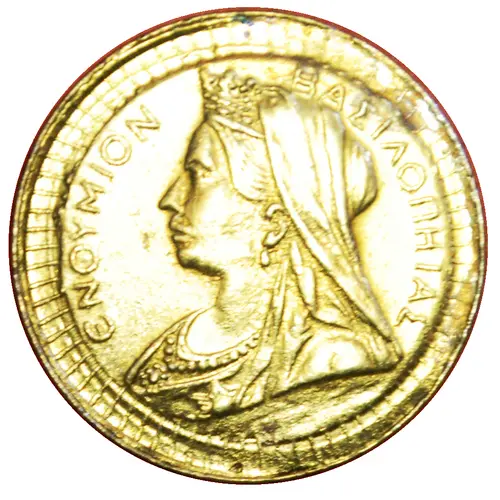 | Obverse description | Queen Victoria (type of gold Sovereign 1893-1901). Legend with spelling mistake around. |