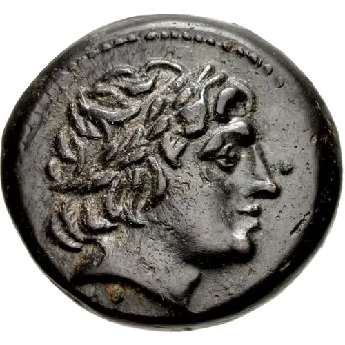 | Описание аверса | Laureate head of Apollo right. |