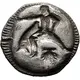 Historical Context: This silver nomos from Tarentum, struck between 510 and 500 BC, belongs to the archaic period of Magna Graecia coinage. Tarentum, a thriving Spartan colony in Calabria, was a significant economic power, benefiting from its strategic port and fertile hinterland. This early coinage reflects the city's burgeoning prosperity and its independent identity, establishing the iconic imagery that would define its numismatic output for centuries. The production of such substantial silver issues underscores Tarentum's growing influence and wealth in the Hellenic world.