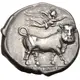 | Reverse description | Man-headed bull standing right, head facing; above, Nike flying right, crowing bull |