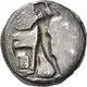 | Obverse description | Apollo striding right, brandishing laurel branch in his upraised right hand and with small figure running right on his outstretched left arm, his head turned back to look at Apollo. To right, stag standing right, head turned back to left and all within cable border |