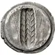 | Reverse description | Ear of barley with seven grains, incuse with a rayed border |