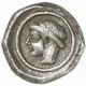 | Obverse description | Phalanthos, nude, riding dolphin to left, both arms outstretched, below, a scallop. |