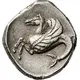 | Obverse description | Phalanthos riding dolphin to left, extending both his arms to left as if balancing himself. Below, scallop shell |