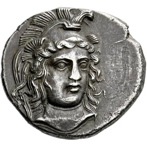توضیحات روی سکه Helmeted head of Athena facing three-quarters right.