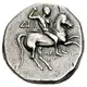 | Descripción del anverso | Naked horseman right, holding shield and three spears. |