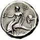 | Descripción del reverso | Phalanthos riding dolphin left, holding Trident and Kantharos; female head in right field. |