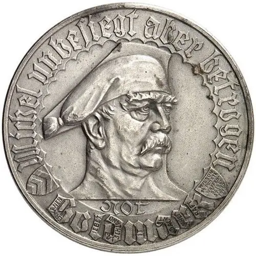 Depicted is a bust right resembling Otto von Bismarck as `Michel` wearing a sleeping cap inside the one denomination. |