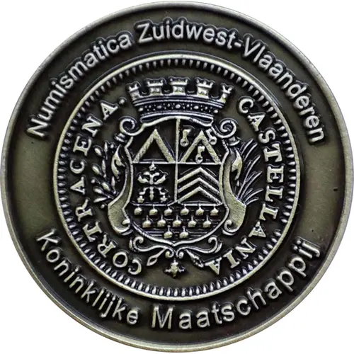 | Opschrift voorzijde | Numismatica Zuidwest-Vlaanderen CASTELLANIA CORTRACENA Koninklijke Maatschappij (Translation: Numismatica Southwest Flanders CASTLERY OF KORTRIJK Royal Society) |