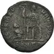 Emperor standing facing, head left, holding standard and resting shield at side, bound captive seated on ground to left, head right |