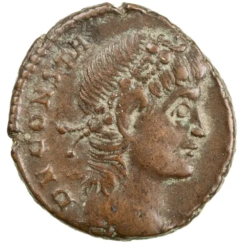 | Aversbeschreibung | Head of Constans, rosette-diademed, right |