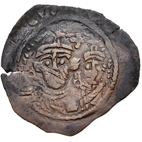 | Obverse description | Facing busts of Heraclius (older) and Heraclius Constantine (younger), both wearing chlamys and elaborate crown with cross; cross in field above; pseudo-legend around |