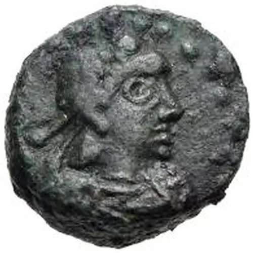 | Aversbeschreibung | Pearl-diademed, draped, and cuirassed bust facing right. |