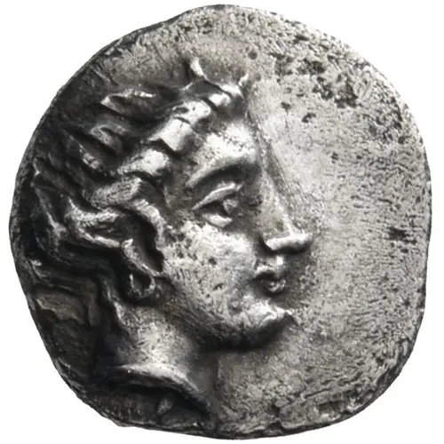 | Opis awersu | Head of the nymph Chalkis to right |