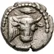 | توضیحات روی سکه | Bull’s head and neck to right, head facing front. Above, barley grain |