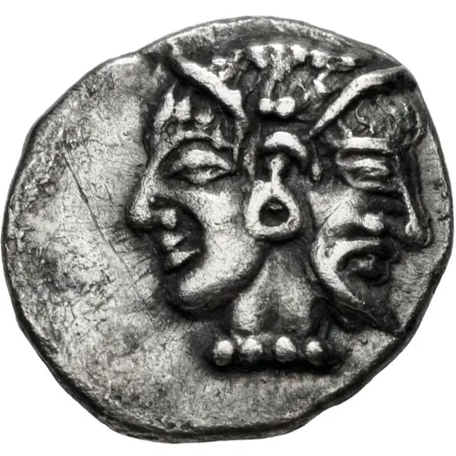 | Obverse description | Janiform head of Hera, on left, and Zeus, on right. |