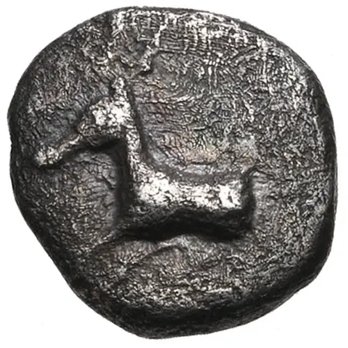 | توضیحات روی سکه | Forepart of the Keryneian Hind facing left |