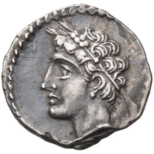| Obverse description | Youthful male head to left, wearing wreath of grain ears within dotted circle |