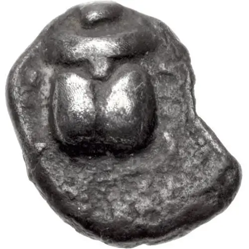 Technical/Grading: Weighing 0.61 grams and measuring 8.0 millimeters, this silver obol exemplifies the technical limitations and achievements of Archaic minting. High-points for preservation would typically include the central features of the chosen design, such as the eyes or nose if a head, or prominent elements of a symbol. Due to the small flan and hand-striking methods, strikes are frequently off-center, and design elements may be partially present or weakly rendered. A well-centered strike with clear details on both sides is rare and highly prized, demonstrating superior craftsmanship for the era.