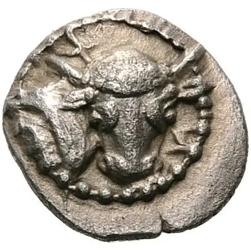 | Obverse description | Head and neck of bull to right, head facing front. Above, Χ and below right, Ν (retrograde) |