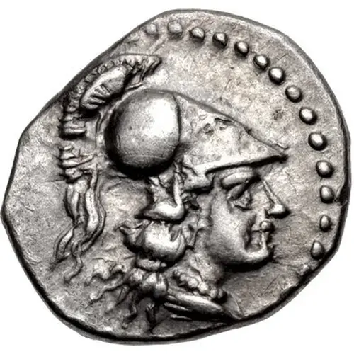 | 正面描述 | Helmeted head of Athena right, drapery around neck |