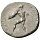 | Reverse description | Warrior advancing left, seen from behind, nude but for his helmet, with shield over his left arm and a couched spear held in his right |