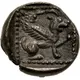 | Reverse description | Winged quadruped, with a horned lion-like head and wing terminating in a bull’s head, seated right, raising left forepaw; all in dotted square within incuse square. |