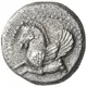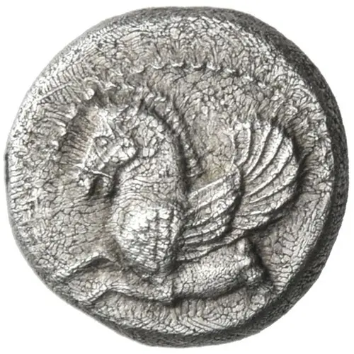| Reverse description | Goat kneeling right, head turned back to left; above, ivy leaf. |