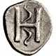 | Beschrijving keerzijde | H with straight sides over a bow |