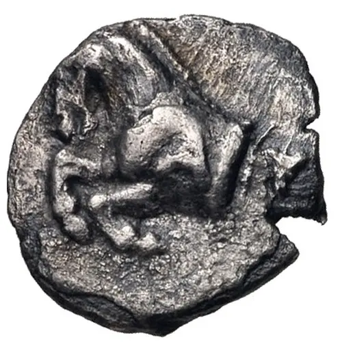 | Obverse description | Forepart of horse right, A on shoulder and a grape bunch to right |