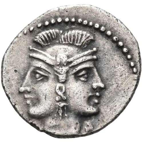| Obverse description | Janiform head of Athena, wearing crested helmets, pendant earring, pearl necklace and aegis. |