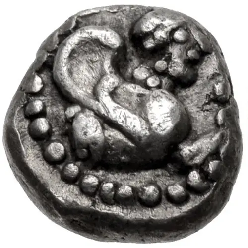 | Descrizione del dritto | Forepart of sphinx facing right in beaded ring |