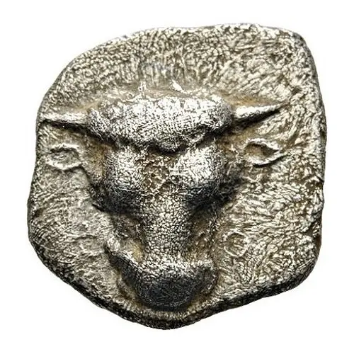 | Popis rubu | Forepart of boar to left. To left, olive-sprig and all within incuse square |