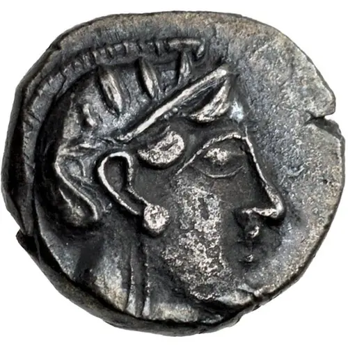 | Obverse description | Head of Athena right, with frontal eye, wearing crested Attic helmet with pi-style palmette and three olive leaves on the bowl. |